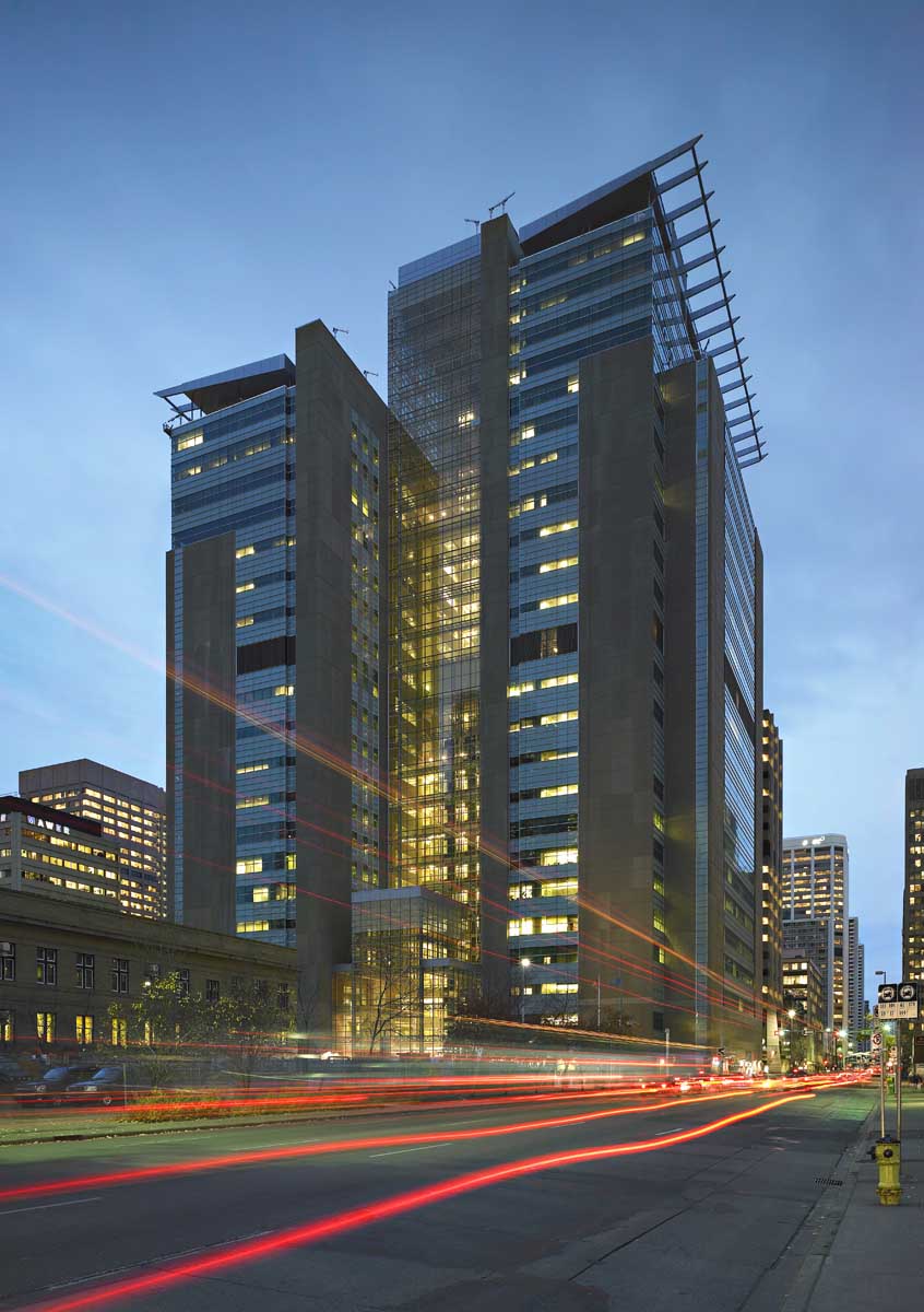 The building’s towers are modelled after the scales of justice, with 20 storey and 24 storey towers joined together by a 26 storey atrium. The facility houses the three levels of the Alberta court system, the lower Alberta Court of Justice, the Court of King’s Bench and the Court of Appeal of Alberta. After that, it’s off to the Supreme Court of Canada in Ottawa.