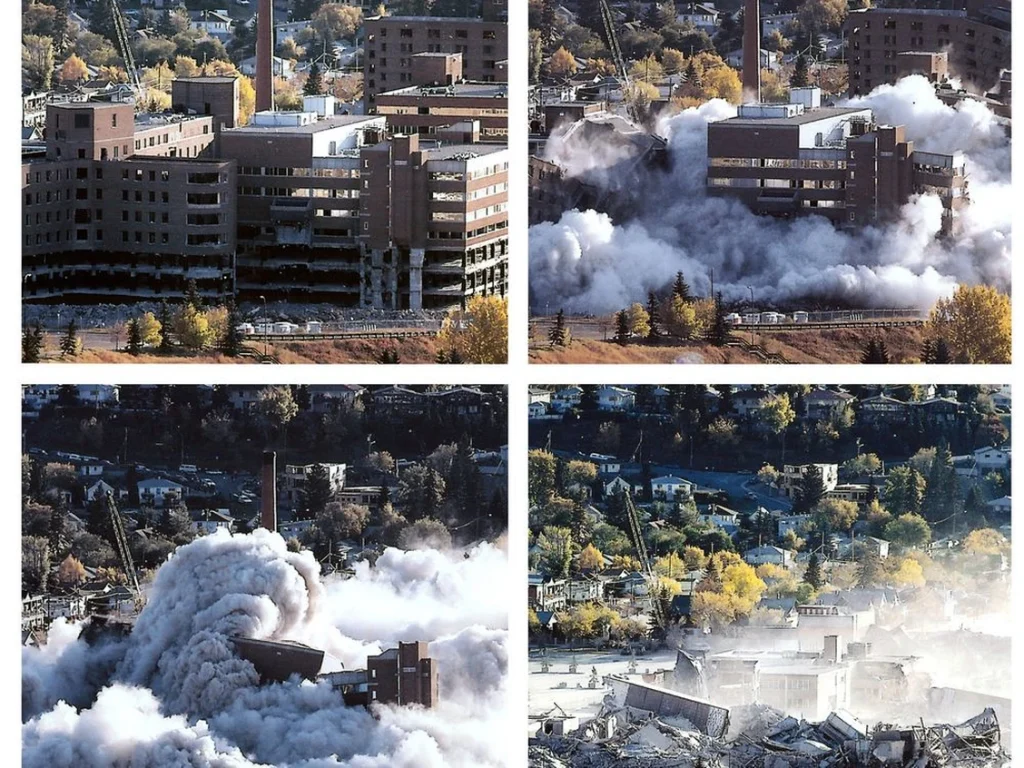 On 4 October 1998,the Calgary General Hospital was imploded. I was living in Texas at the time, but my family and I were able to watch the demolition of the hospital over this new thing called the Internet. It was the largest hospital in North America ever decommissioned and demolished (up until Hurricane Katraina damaged a hospital in New Orleans in 2005.