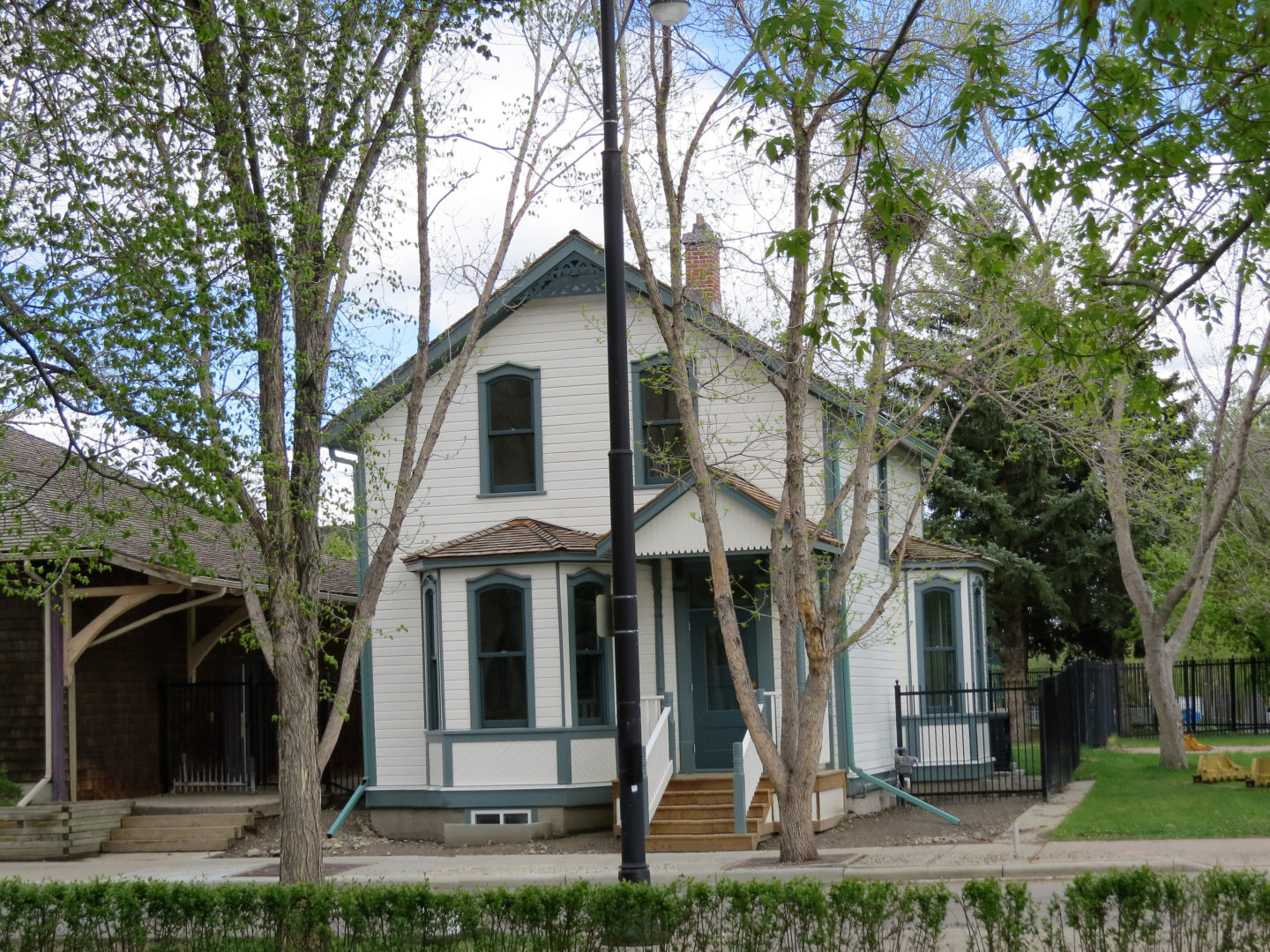 The City moved the house again (in 2005) onto a new foundation at its current location adjacent to St Mary’s Parish Hall and the historic CNR railway station, now home to Alberta Ballet. The rear kitchen was removed. It sat empty and boarded up until restoration began in the spring of 2019 on the heels of the Enoch Sales fire in nearby Victoria Park. The CBC (Feb 12, 2019) reported that the $1.45 million restoration included replacing the siding, the roof, electrical and mechanical systems.